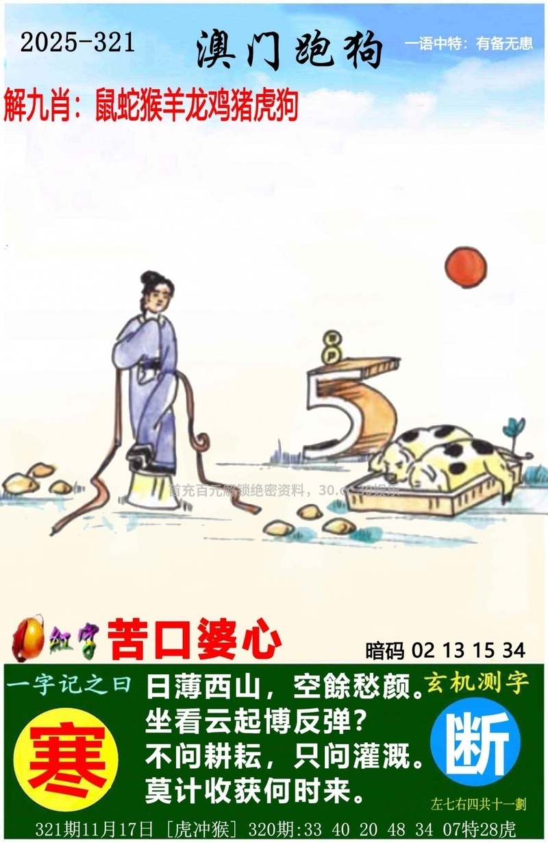 | 323期:【跑狗特码诗】开發00 玄机诗云三茶六礼,低唱浅斟。珠幢斗绝金铃掉。滿袖醇香,求贤若渴。雌沉水底雄上天。 诗句解图中是一个男人正在练习倒茶技术,解野兽生肖虎鼠兔龙蛇猴,夯雀先飞,解天肖兔马猴猪牛龙 单双:双数 |